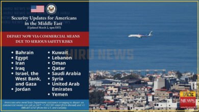 “බරපතල ආරක්ෂක අවදානම් හේතුවෙන්” මැදපෙරදිග පුරා පිහිටි රටවලින් “දැන්ම පිටවන්නැයි”අමෙරිකානු රාජ්ය දෙපාර්තමේන්තුව එරට පුරවැසියන්ගෙන් ඉල්ලා තිබෙනවා. රාජ්ය දෙපාර්තමේන්තුවේ කොන්සියුලර් කටයුතු…